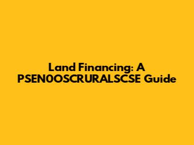 Land Financing: PSEN0OSCRURALSCSE Guide