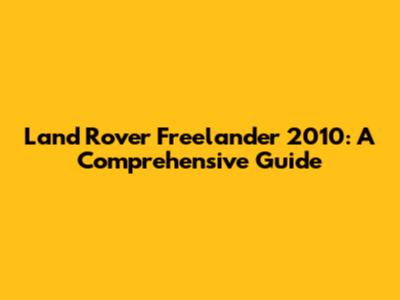 Land Rover Freelander 2010 Specs: Engine, Performance, and Features