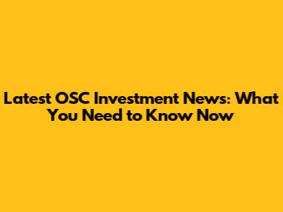 Latest OSC Investment News: What You Need To Know Now