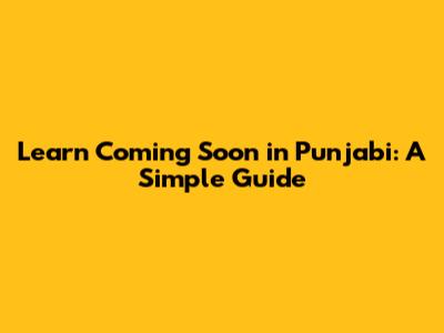 Learn 'Coming Soon' In Punjabi: A Simple Guide