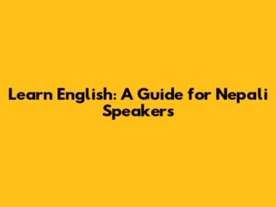 Learn English: A Guide For Nepali Speakers