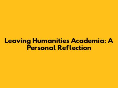Leaving Humanities Academia: A Personal Reflection