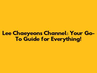 Lee Chaeyeon's Channel: Your Go-To Guide For Everything!