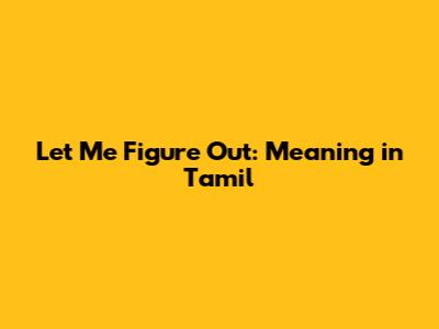Let Me Figure Out: Meaning In Tamil