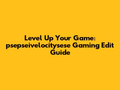 Level Up Your Game: Psepseivelocitysese Gaming Edit Guide