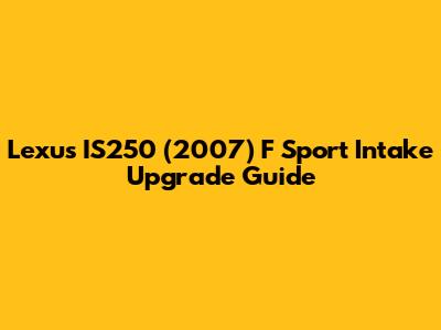 Hey guys! Are you looking to boost the performance and sound of your 2007 Lexus IS250 F Sport? One of the most popular and effective upgrades is installing a new air intake system. In this guide, we'll dive into everything you need to know about upgrading your Lexus IS250's intake, from the benefits and types of intakes available to installation tips and recommendations. So, let's get started and explore how an F Sport intake upgrade can transform your driving experience!