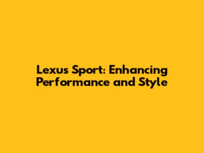 Lexus Sport: Enhancing Performance And Style