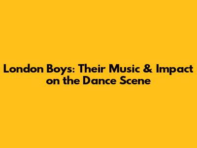 London Boys: Their Music & Impact On The Dance Scene
