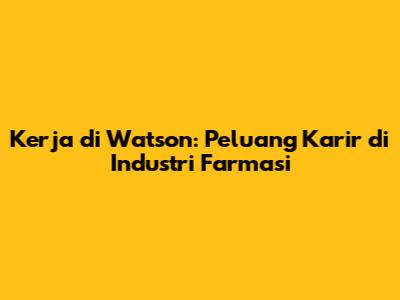 Lowongan Kerja Watson: Karir Di Industri Farmasi