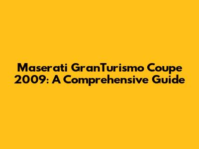 Hey car enthusiasts! Ever dreamed of owning a sleek, powerful Italian masterpiece? Well, the Maserati GranTurismo Coupe 2009 might just be the car you've been searching for. This article dives deep into everything you need to know about this iconic grand tourer, from its stunning design and exhilarating performance to its luxurious interior and potential maintenance needs. Buckle up, because we're about to take a thrilling ride! We'll explore the ins and outs of the 2009 Maserati GranTurismo Coupe, covering everything from its engine specifications to its interior features and overall driving experience. Get ready to discover why this car continues to captivate car lovers worldwide. Let's delve into the heart of this magnificent machine and uncover what makes it such a sought-after vehicle. Prepare to be amazed by the blend of luxury, performance, and Italian flair that defines the 2009 Maserati GranTurismo Coupe. Are you ready to explore the legacy of the Maserati GranTurismo Coupe 2009?
