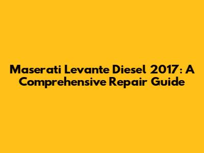Maserati Levante Diesel 2017: A Comprehensive Repair Guide