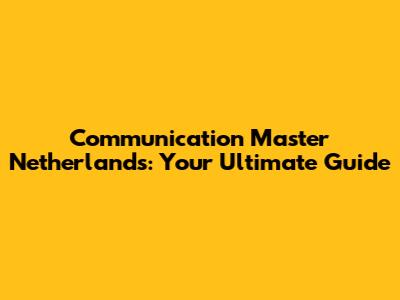 Master Communication In The Netherlands: Your Ultimate Guide