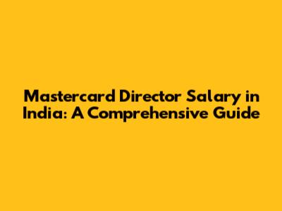 Mastercard Director Salary In India: A Comprehensive Guide