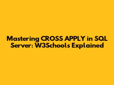 Mastering CROSS APPLY In SQL Server: W3Schools Explained