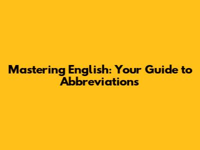 Mastering English: Your Guide To Abbreviations