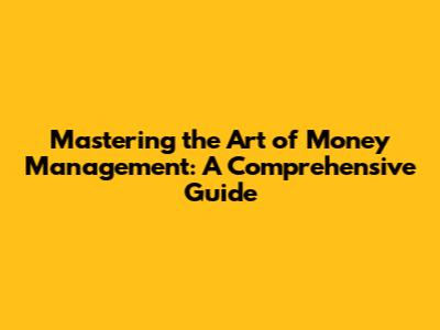 Mastering The Art Of Money Management: A Comprehensive Guide