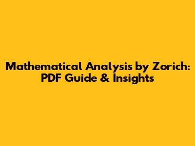 Mathematical Analysis By Zorich: PDF Guide & Insights