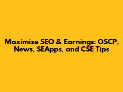 Maximize SEO & Earnings: OSCP, News, SEApps, And CSE Tips