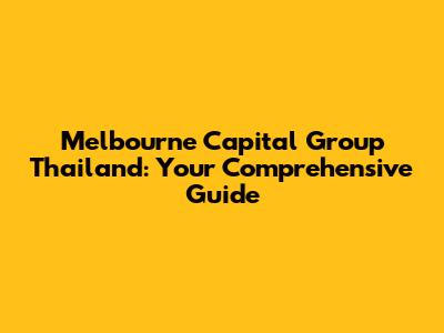 Melbourne Capital Group In Thailand: Your Comprehensive Guide