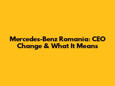 Mercedes-Benz Romania: CEO Change & What It Means