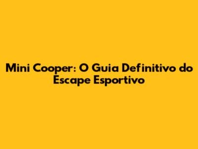 Mini Cooper: Desvendando O Escape Esportivo Perfeito