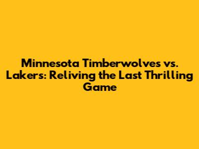 Minnesota Timberwolves Vs. Lakers: Reliving The Last Thrilling Game