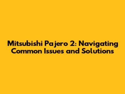 Mitsubishi Pajero 2: Common Issues & Solutions