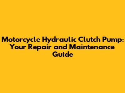 Motorcycle Hydraulic Clutch Pump: Repair & Maintenance Guide