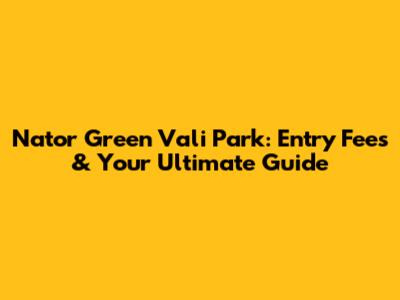 Nator Green Vali Park: Entry Fees & What You Need To Know