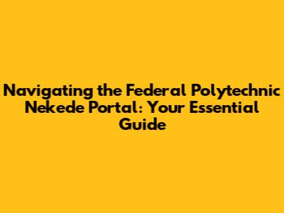 Navigating The Federal Polytechnic Nekede Portal: Your Essential Guide