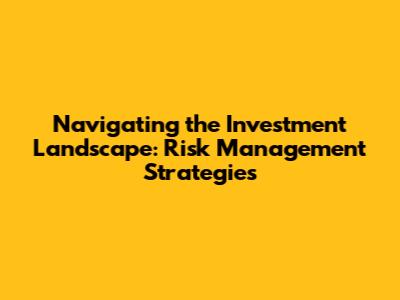 Navigating The Investment Landscape: Risk Management Strategies