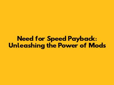 Need For Speed Payback: Unleashing The Power Of Mods