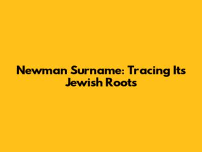 Newman Surname: Tracing Its Jewish Roots