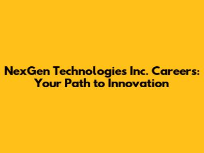 NexGen Technologies Inc. Careers: Your Path To Innovation