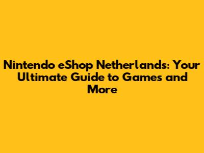 Nintendo EShop Netherlands: Your Guide To Games & More