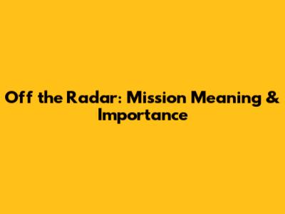 Off The Radar: Mission Meaning & Importance