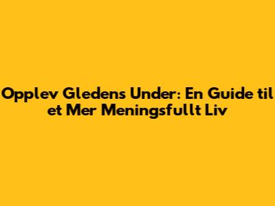 Opplev Gledens Under: En Guide Til Et Mer Meningsfullt Liv