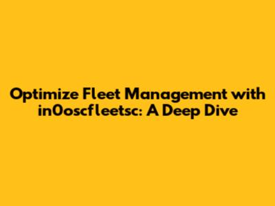 Optimize Fleet Management With In0oscfleetsc: A Deep Dive