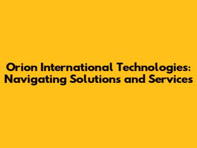 Orion International Technologies: Solutions & Services