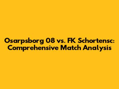 Hey guys! Let's dive deep into the exciting match between Osarpsborg 08 and FK Schortensc. We're gonna break down everything: the scores, the key plays, and how each team performed. Get ready for a detailed analysis that’ll give you the inside scoop on this football showdown. Whether you're a die-hard fan or just curious about the game, this is where you'll find all the juicy details. So, grab your snacks, settle in, and let's get started!