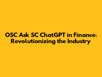 OSC Ask SC ChatGPT In Finance: Revolutionizing The Industry