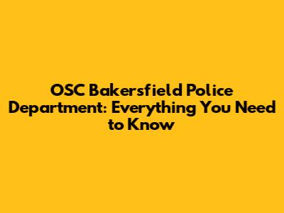 OSC Bakersfield Police: All You Need To Know