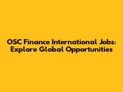 OSC Finance International Jobs: Explore Global Opportunities