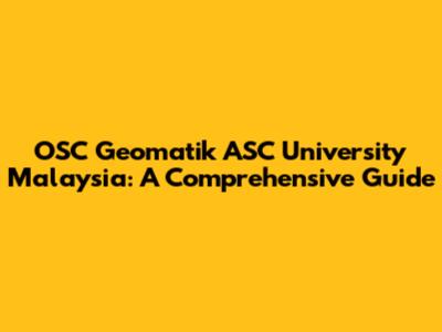 OSC Geomatik ASC University Malaysia: A Comprehensive Guide