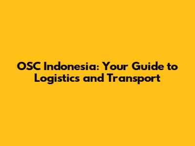 OSC Indonesia: Your Guide To Logistics And Transport