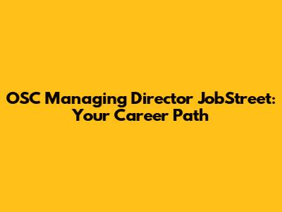 OSC Managing Director Job Opportunities On JobStreet
