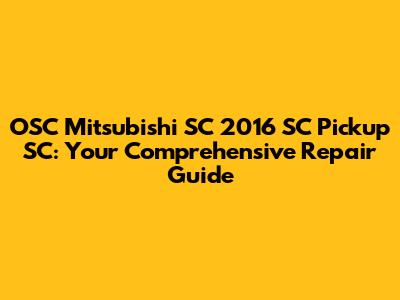 Repairing your OSC Mitsubishi SC 2016 SC Pickup SC can be a rewarding experience. With the right information, tools, and a bit of patience, you can keep your SC running smoothly for years to come. Remember to always prioritize safety and consult a professional mechanic if you're unsure about a repair. Happy wrenching!