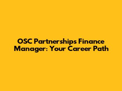 OSC Partnerships Finance Manager: Your Career Path