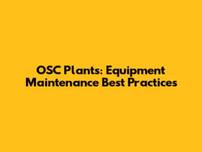 OSC Plants: Equipment Maintenance Best Practices