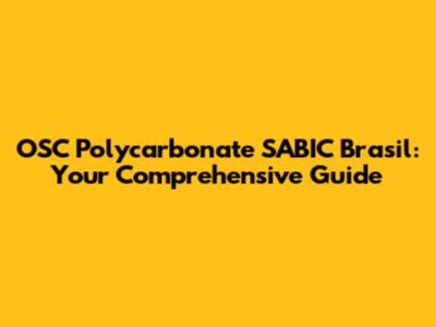 OSC Polycarbonate SABIC Brasil: Your Comprehensive Guide